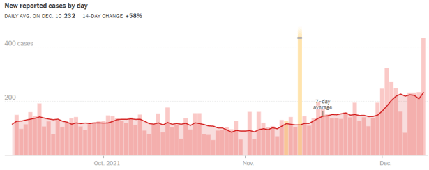 Adding to the ominous news is the threat of the omicron variant. The numbers reported by the Times are probably almost all from delta-variant infections, not omicron.