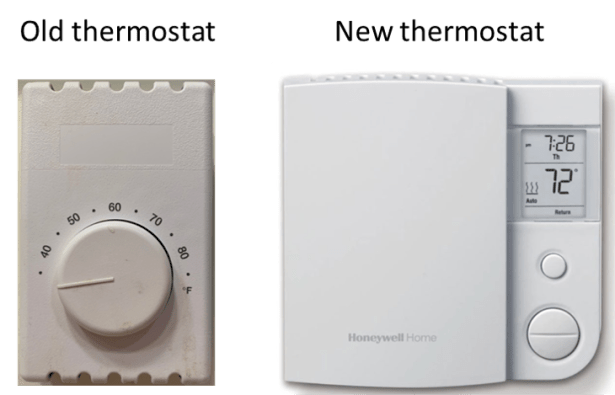 If that’s what you have in your cottage, you know that it’s hard to get your place to stay at a comfortable temperature. By the time the thermostat senses that the room temperature has risen to the level you’ve set and shuts off the heat, most of the room may already be hotter than you wanted. Then, the same thing happens in the other direction as the room cools down. The temperature can swing back and forth by as much as six degrees, according to a Crosslands resident who has analyzed the situation. Kendal is now offering free digital thermostat replacements to fix this problem.