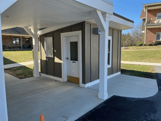 Walking distance to the Crosslands Center from the farthest cottages was much greater (some are over 1,500 feet away, as the crow flies) and providing covered walkways from every unit was not practical. In fact, only one apartment building (Brinton), and a few individual cottages next to it, had covered walkways connecting them all the way to the Center. That is still true today.