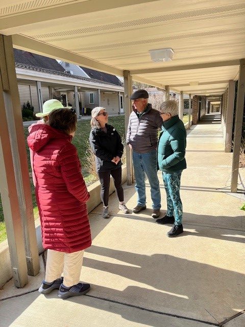 Mobility aids and walking distance. Many IL residents on both campuses make use of mobility aids, which include canes or walking sticks, walkers, motorized wheelchairs, and 3-wheeled motorized “scooters”. But I believe there is a significant difference in how these devices are used on each campus. At Kendal, there are more than a dozen IL residents who find motorized mobility aids essential in getting to and from the Center. If it were not for the covered walkways, some of them would no doubt need to be in the personal care facility (Cumberland) because they would not have a way to get to the Center.