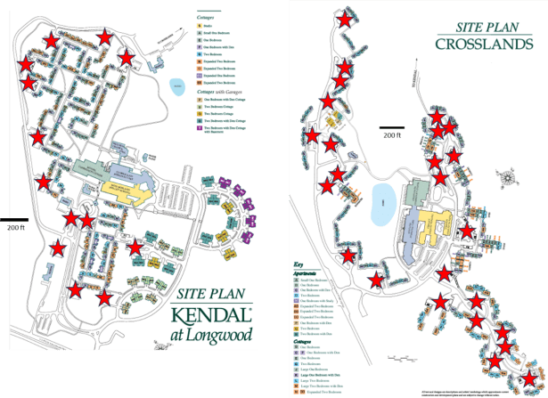 Both of these factors—covered walkways and shorter distances—suggest that some Kendal residents might be able to remain in their cottages longer than some Crosslands residents whose cottages aren’t close to the Center.